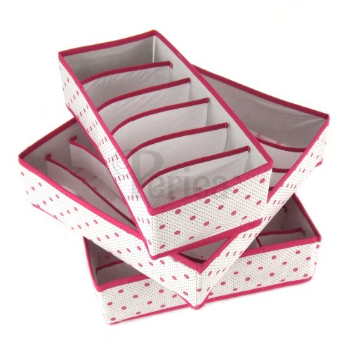 -. Title : Periea - Pack of 3 Drawer Organizers for Bras, Underwear, Socks & Ties - Holly (Pink)