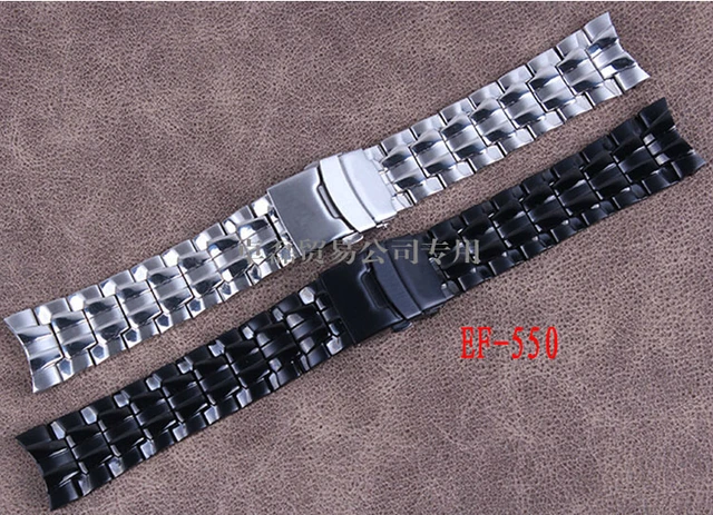 | [해외] 프로모션 22 미리메터 새로운 블랙 고품질 광택 스테인레스 스틸 시계 밴드 스트랩 접이식 걸쇠 버클 브랜드 ef-550 |