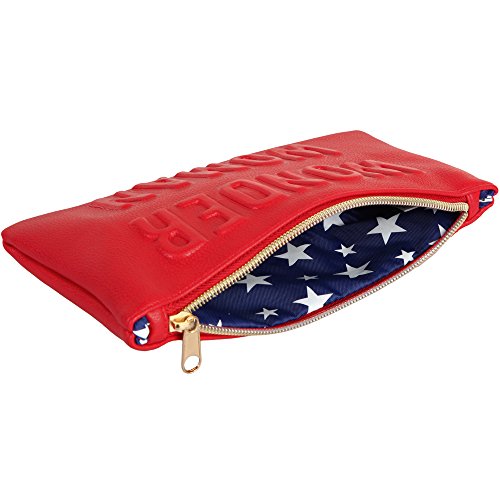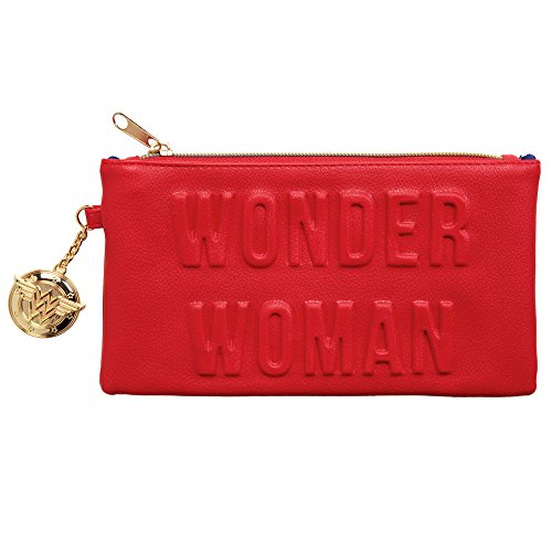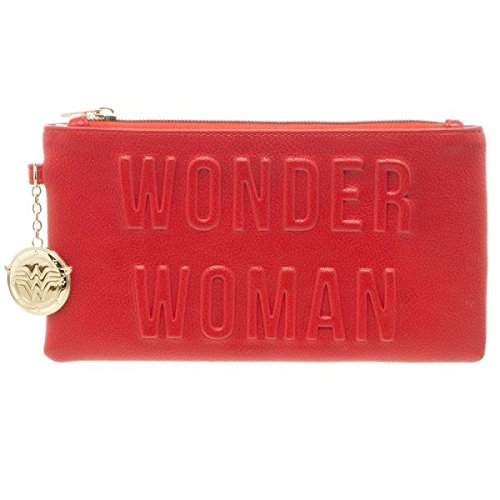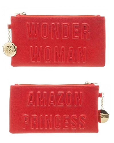 Product DescriptionDC Comics Wonder Woman Red Debossed - Wonder Woman Amazon Princess - Text Clutch Zipper Wallet w/ Metal Charm0