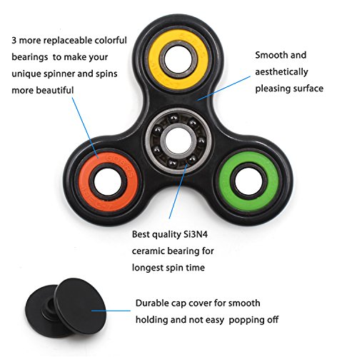 -. Feature : ♥ LONGEST SPIN TIME - This spinner is made of the best quality si3N4 ceramic, in this way, we can spin much more smoothly and Guarantee longer spin time comparing to other steel or ZrO2 ceramic bearings(NOTE: The average spin time is 1.5+ min, and we can guarantee 2-4 min spin time after the breaking-in period) / ♥ MULTIPLE-CHOICE - Including 3 spare colorful bearings, you can have two different types of spinners (the normal type and the colorful type)by replacing the load-bearing bearings as you like, in this way, you can also experience two different kind of spin speed / ♥ GREAT STRESS REDUCER - Making no noise, Ideal for people trying to quite nail biting, smoking, leg shaking and all type of attention disorder issues,Helping people release Stress / ♥ VERY EASY TO USE - This spinner toy is designer in Ergonomic curved shape and perfect size for both children and adult, very easy to carry and play, Simply flick and spin with one or two hands / ♥ DURABLE STRUCTURE - No more 3D P.R.Inting and edge sanding! Durable ABS frame construction with rounded edges, complimentary cap cover, No Repair, Oil, Maintenance needed! guarantee long term usage