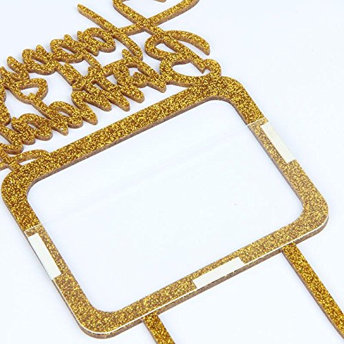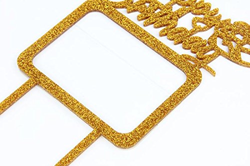 Gold Happy Birthday Cake Topper with Photo Frame, Birthday Girl Boy Woman Man Photo Picture Cake Toppers, Party Cake Decorations