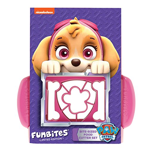 -. Binding : Baby Product -. Brand : Nickelodeon -. Color : Paw Patrol Skye -. Department : baby-boys -. EAN : 0091037638304 -. Feature : Bite-size fun kids can't resist / Developed for TV Show - Paw Patrol. Creates puppy bones, paw P.R.Int & iconic Paw Patrol Shield. / Each set includes food cutter and matching top to pop out edible fun shapes / As seen on Shark Tank and recipient of over 30 awards for parent's choice, innovation and design. Fun bites is also rated as a great find for children with special needs. / Easy to use for kids and adults. Just press the cutter piece down and rock back and forth to cut through most any food. Then pop out perfect pieces with the matching top. Hands stay clean! Mom invented BPA free Dishwasher safe -. IsAdultProduct : 0 -. Label : FunBites LLC -. Manufacturer : FunBites LLC -. Model : 7001 -. MPN : 7001 -. NumberOfItems : 1 -. PackageQuantity : 1 -. PartNumber : 7001 -. ProductGroup : Baby Product -. ProductTypeName : BABY_PRODUCT -. Publisher : FunBites LLC -. ReleaseDate : 2016-12-01 -. Studio : FunBites LLC -. Title : FunBites Food Cutter Set, Paw Patrol Skye -. UPC : 091037638304
