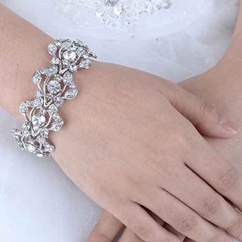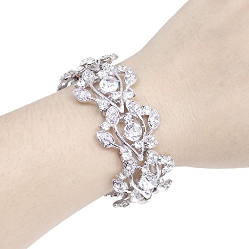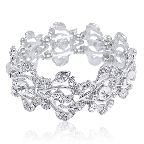 -. Binding : Jewelry -. Brand : EVER FAITH -. Department : womens -. Feature : [!]EVER FAITH is a US registered trademark and Ever Faith Jewelry(former name: Kiss Bling) is its only owner. We will pursue legal action against trademark infringement in case of UNAUTHORIZED sale or resale. / Main Color: clear / Length: 15.5cm (6.10"). Width:2.9cm (1.14") / Wrapping: Come with some spare crystals, and a gift box or favor bag (depend on product size) -. Label : EVER FAITH -. Manufacturer : EVER FAITH -. Model : N02993-1 -. MPN : N02993-1 -. PartNumber : N02993-1 -. ProductGroup : Jewelry -. ProductTypeName : FASHIONNECKLACEBRACELETANKLET -. Publisher : EVER FAITH -. Studio : EVER FAITH -. Title : EVER FAITH® Bridal Silver-Tone Floral Leaf Elastic Bracelet Clear Austrian Crystal