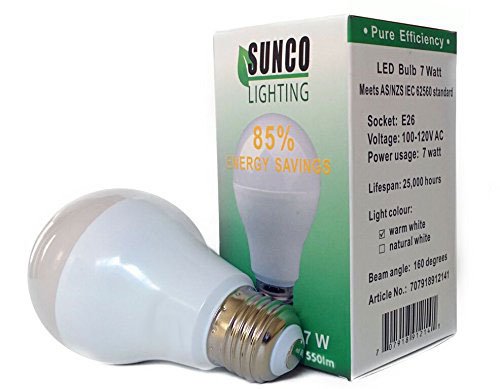Sunco Lighting Pack of 6 7W A19 LED Light Bulb 3000K Kelvin (Warm White), DIMMABLE, 550 Lumens, LED Bulbs, Medium Screw, E26