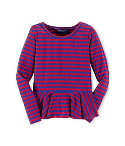 Ralph Lauren Polo Little Girl's Stripe Peplum Top features a classic stripe pattern and ruffle at the bottom that adds style. The signature embroidered pony and cozy crew neckline make this top perfect for your little girl!