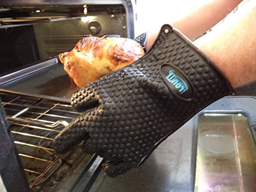 - Feature : NO MORE BURNS Heat resistant at temperatures of up to 425°F, our gloves provide protection pot holders and hot pads just can't. Plus, they're waterproof to shield you from scalds. / FIVE FINGERS, MORE FLEXIBILITY Oven mitts make it impossible for you to turn burgers at the grill, use a spatula on the stove or grip a heavy roaster tightly. Our gloves fit like a second skin, so you can move your fingers and thumbs with ease. / SLIP-RESISTANT FOR MAXIMUM SAFETY The texturized gripping surface keeps everything safely in your grasp. You can even use these silicone gloves to open up tight jar lids due to their incredible grip strength. / DURABLE, NONTOXIC DESIGN Made from FDA-approved food-safe silicone, our gloves will stand up to daily use with ease. You can even place them in the dishwasher for cleaning without them suffering damage! / SATISFACTION GUARANTEED We're fully committed to your satisfaction and will replace the heat resistant silicone gloves or refund your money if you're not pleased with your purchase.