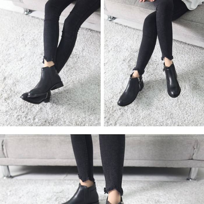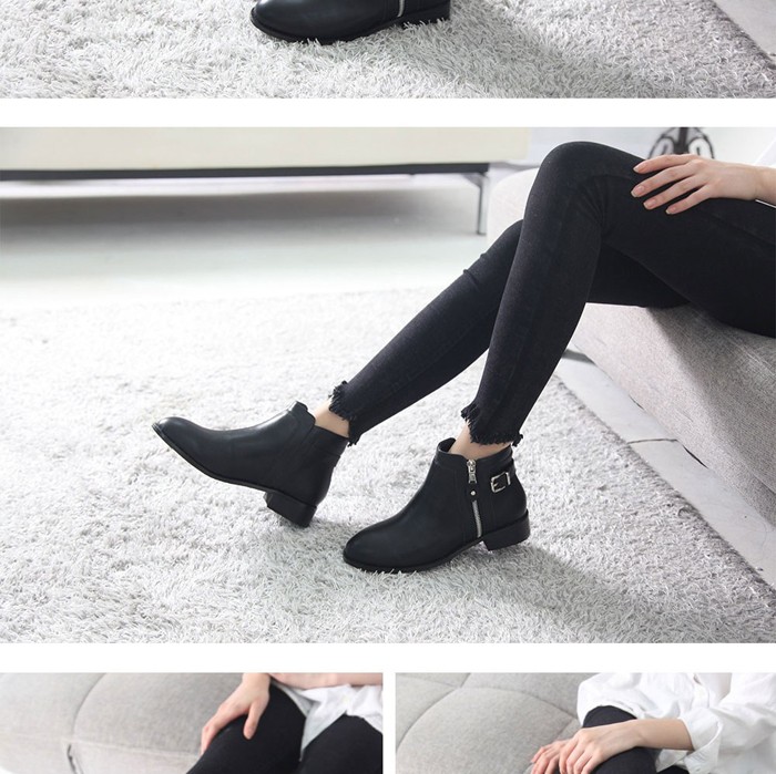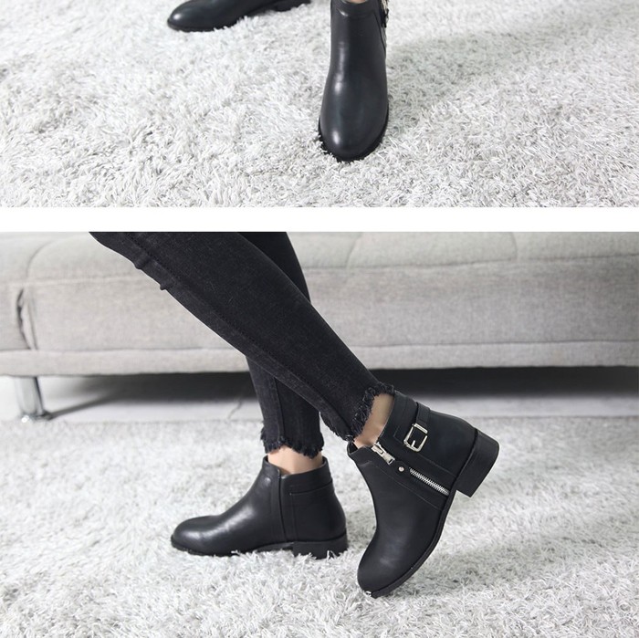 商品名:ショートブーツ レディース ローヒール サイドジッパー 2017 秋冬 ファッション 靴 婦人靴