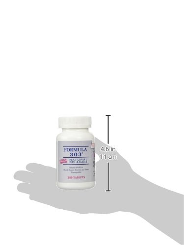 -. Binding : Health and Beauty -. Brand : Dee Cee Laboratories -. Label : Dee Cee Laboratories -. Manufacturer : Dee Cee Laboratories -. ProductGroup : Health and Beauty -. ProductTypeName : HEALTH_PERSONAL_CARE -. Publisher : Dee Cee Laboratories -. Studio : Dee Cee Laboratories -. Title : Formula 303 Maximum Strength Natural Relaxant | 250 Tablets