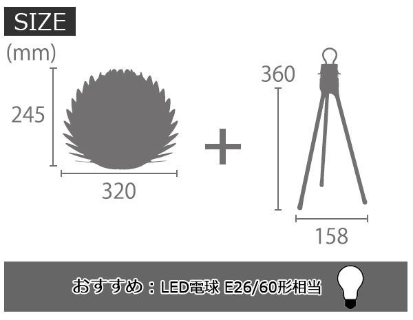 | 仕様 | 組立式 定格電圧:100V 50/60Hz 点灯:中間スイッチ(コンセント) 電球:E26/60形相当(LED/1個)※別売 |