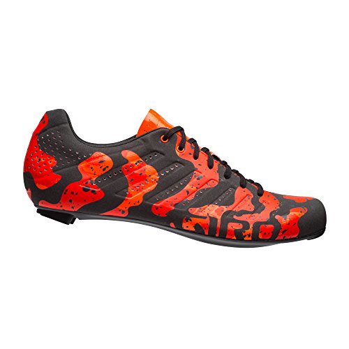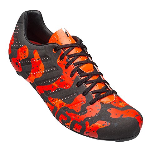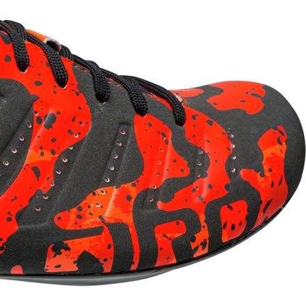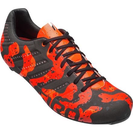 Studio : Giro Publisher : Giro Binding : Apparel Product Description A few years ago, Giro revived the lace-up cycling shoe with the Empire and Empire SLX shoes. For its follow-up act, the California-based brand did the only logical thing: added lava lamp-inspired camouflage. The Empire SLX Limited Edition Shoes are an homage to the long-haired lava lamp crowd for use by the shaved-legged tan line crowd. While we're not entirely sure what prompted the connection (Giro suggests dorm room memories were involved), we do know that the result is a bit of fluo bling at a Phinney-approved 175g with an equally Phinney-approved efficient stiffness. No word on what the US wunderkind thinks of the aesthetics, but--given his penchant for pushing the sartorial envelope--something tells us he'd approve. As implied above, the Empire SLX is the second tier of Giro's Empire line-up. Easton's EC90 SLX2 carbon outsole is the main upgrade from regular Empire models, and it's also the culprit behind the shoe's peloton-proven efficiency. The previous iteration of Empire soles has been plenty stiff enough for the likes of Phinney and Wiggins, and this one's no different. It's just made from lighter carbon and it includes titanium hardware to make it weigh even less. It still maintains that super low stack height, which in turn keeps your feet closer to the pedals to minimize the power loss that occurs with thicker cleat plates. The SLXs are wrapped with the same, single piece of Evofiber microfiber used in the heavier Empire models. This fabric is exceptionally lightweight and highly breathable, featuring perforations for added cooling. This contributes not only to the sleek, minimalist profile, but it also reduces weight. The big difference when comparing the Empires to any other pro-level shoes are the laces. It may seem regressive to put laces on cycling shoes of any level, but the logic actually bears out. Consider the typical pair of hook-and-loop straps with a ratcheting buckle, which contacts the uppers in three places. Now consider the Empire's... 0