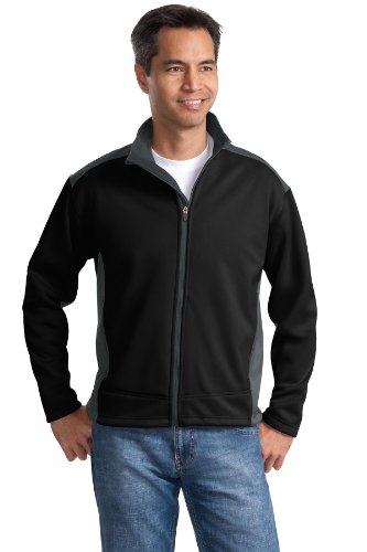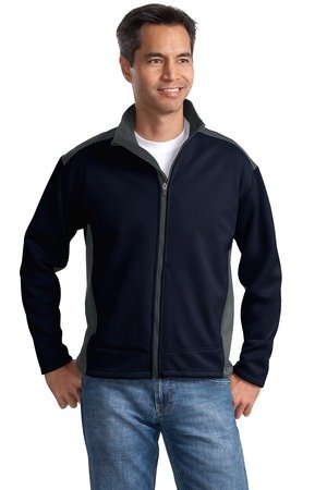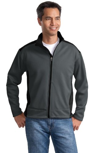 Studio : Port Authority Publisher : Port Authority Product Description Style #: J794 Our Two-Tone Soft Shell Jacket takes on the wet windy world with function and style. Made with polyester interlock bonded to polyester fleece this soft shell breathes to keep you comfortable and has amazing stretch to keep up with your active lifestyle. Rated for protection against water it's ready for whatever adventure your day holds. 100% polyester interlock surface with lamination bonded to 100% polyester fleece 3000MM fabric waterproof rating 3000G/M² fabric breathability rating Storm flap with chin guard Interior left chest pocket Front zippered pockets Open hem with drawcord and toggle for adjustability 0