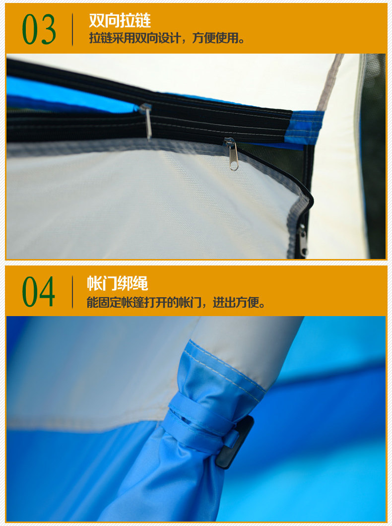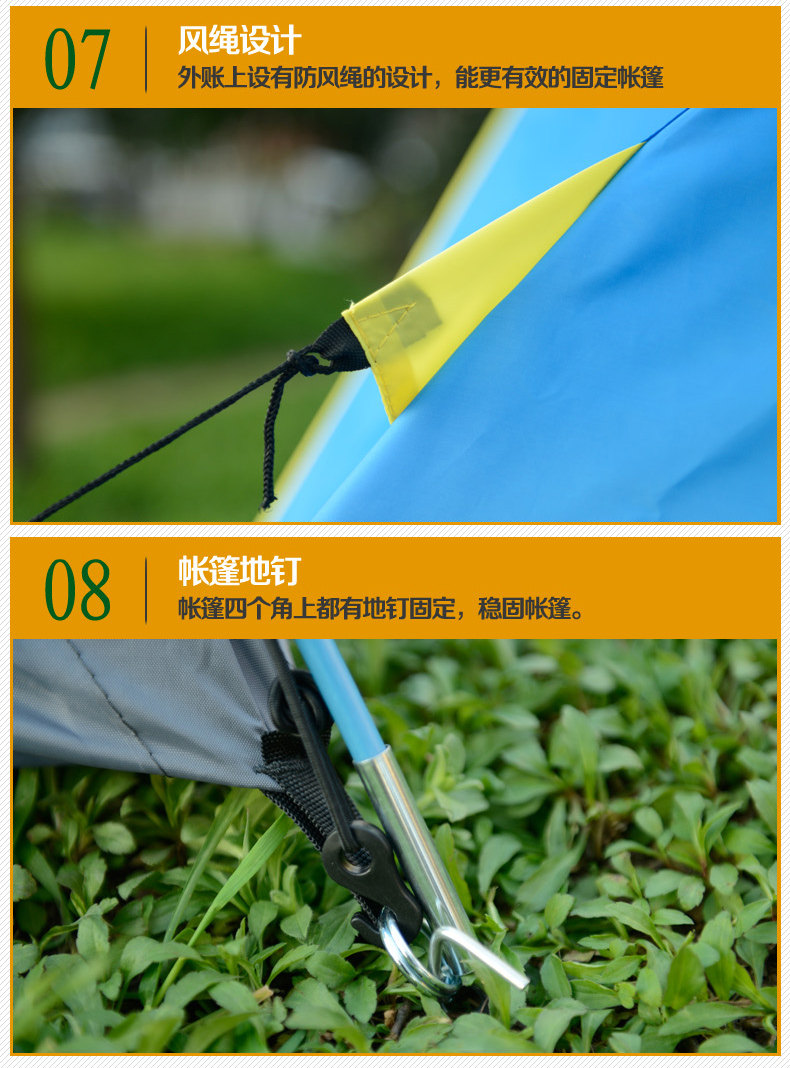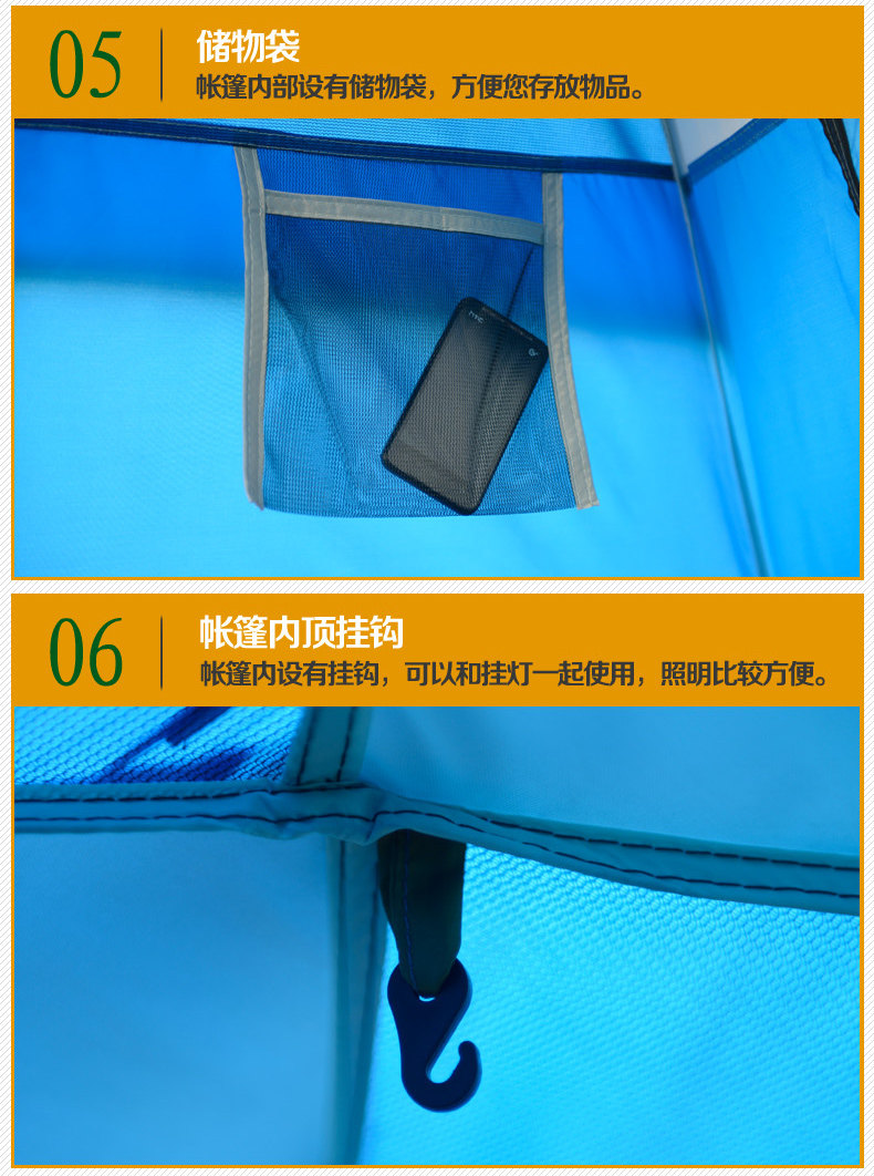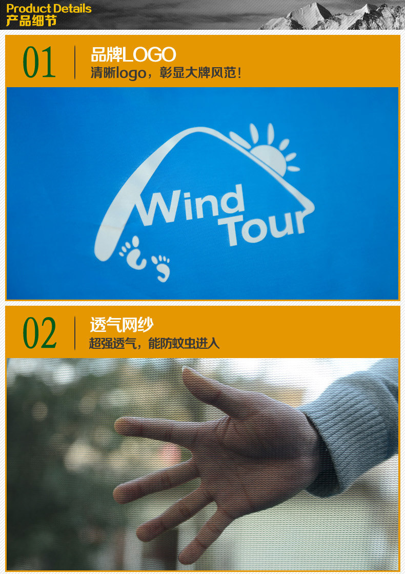 Inner tent material: 210D Oxford cloth + breathable mesh