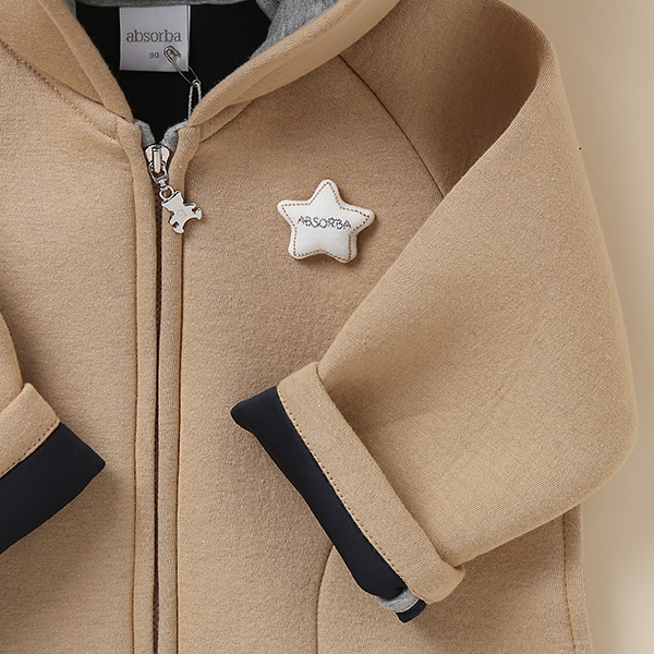 배색원단으로 포인트를 준 귀장식과 인형모티브가 귀여움을 더하고 있습니다.