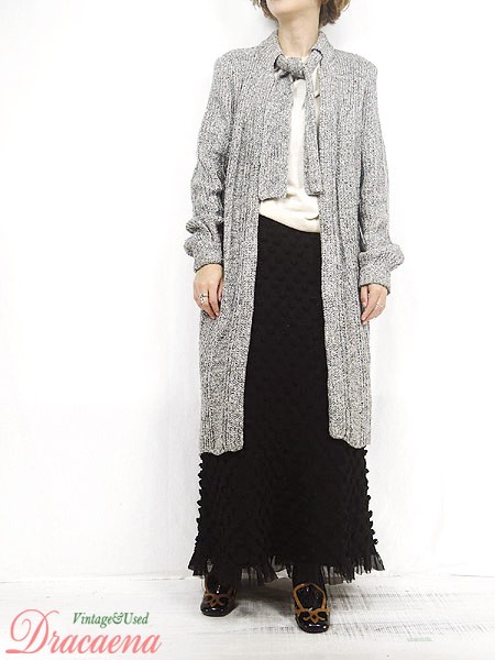Ladies ブランド- カラーグレー メール便不可 コンディション★★★ モデル身長158cm 素材シルク45%・アクリル35%・ウール15%・ナイロン5% 表記サイズM スタッフコメント前立て左、真ん中付近にヨゴレあり。 実寸サイズ 着丈 97 cm 身幅 49.5 cm 肩幅 36 cm 袖丈 65 cm ※ウエスト・ヒップ以外は平置き採寸