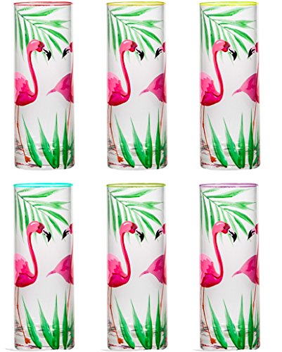 Product Description6 Assorted Hand Painted Flamingo Highball Glasses0