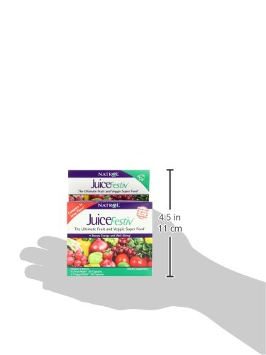 -. Binding : Health and Beauty -. Brand : Natrol JuiceFestiv -. Feature : Boost energy and well-being / Features super fruits: pomegranate, mangosteen, noni and acai / Features super veggies: broccoli, Brussels sprouts and cabbage -. Label : Natrol, Inc. -. Manufacturer : Natrol, Inc. -. MPN : 0047469053031 -. PartNumber : 0047469053031 -. ProductGroup : Health and Beauty -. ProductTypeName : HEALTH_PERSONAL_CARE -. Publisher : Natrol, Inc. -. Studio : Natrol, Inc. -. Title : Natrol JuiceFestiv Dietary Supplement Capsules, 60 Count FruitFestiv & 60 Count VeggieFestiv