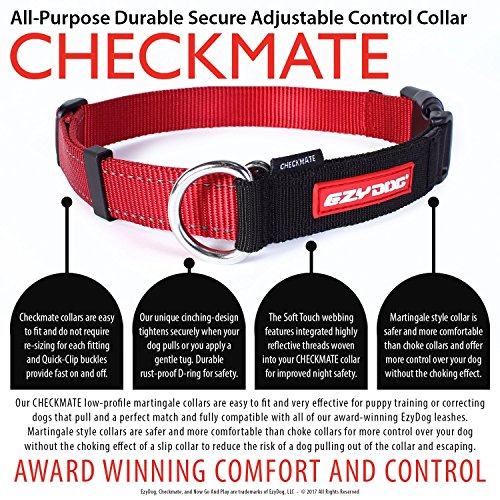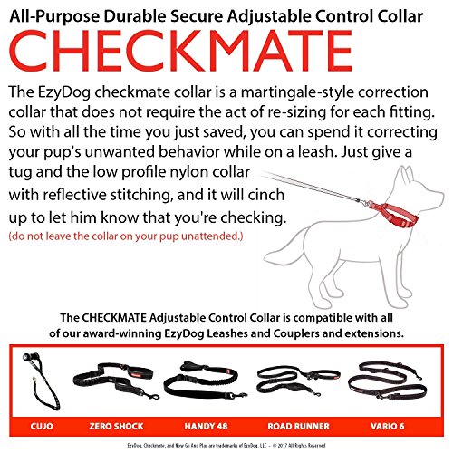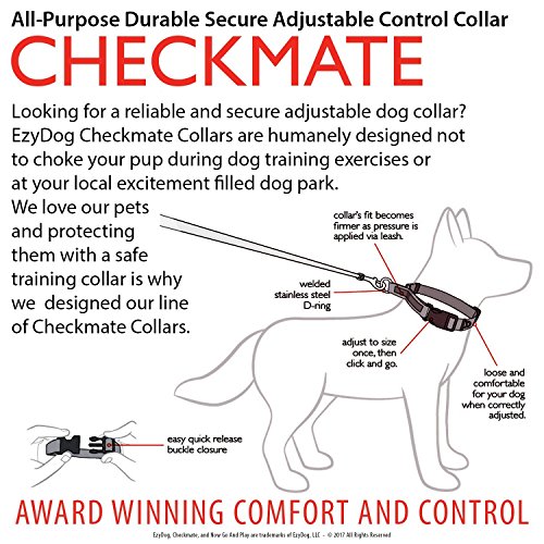 Studio : EzyDog Publisher : EzyDog Binding : Misc. Product Description A reliable and secure adjustable dog collar, EzyDog Checkmate Collars are humanely designed not to choke your pup during dog training exercises or at your local excitement-filled dog park. The Martingale-style Checkmate correction collar also has a lower profile fit, making it suitable as an everyday collar. 0