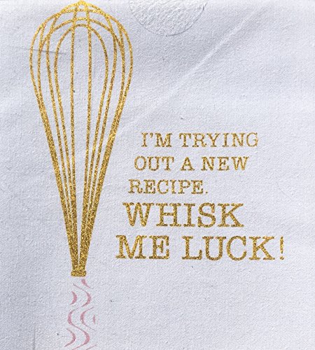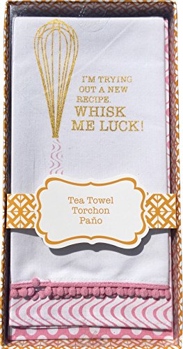 Hostess Gift Pink Set of 3 Assorted Kitchen Tea Towels, I'm trying out a new recipe, WHISK ME LUCK!