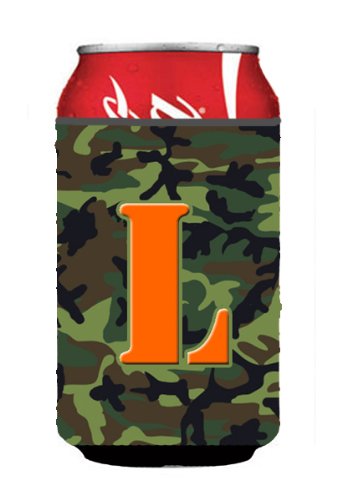 Letter L Initial Monogram - Camo Green Can or Bottle Beverage Insulator Hugger