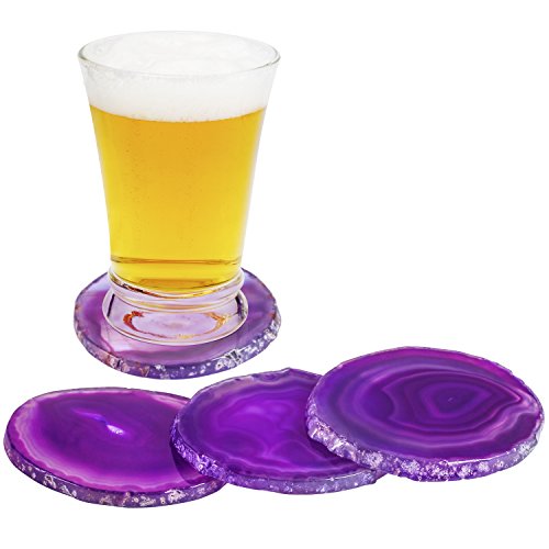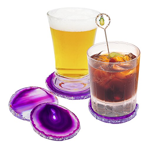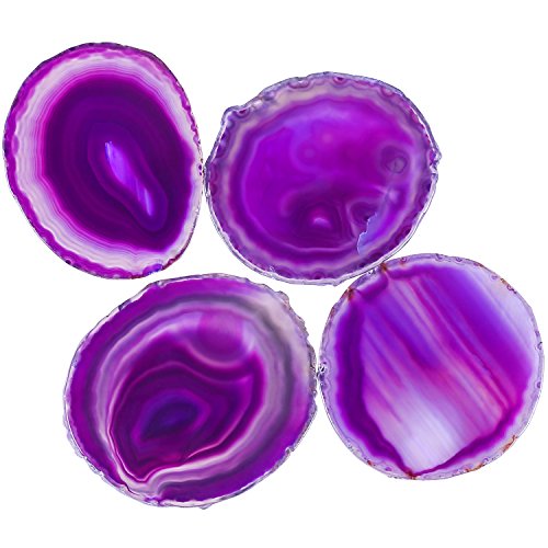 Pantrasamia Agate Coaster Cup Mat Natural Sliced Agate Beverage Coasters for Drinks Gift Set of 4 Plates (3-3.5 Inch, Violet)