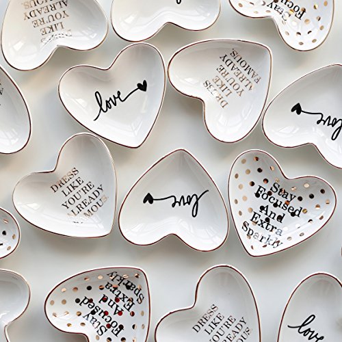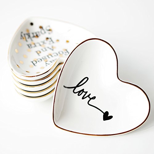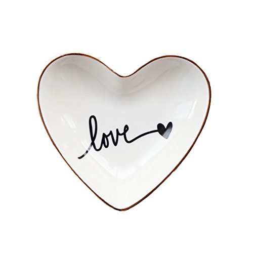 CHOOLD Original Ceramic Heart Shape Ring Dish Holder Jewelry Dish Trinket Holder Jewelry Holder Home Decor Dish Wedding Birthday Xmas Gift