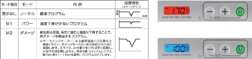크기의 상세 플레이트크기:90mm(길이)×25mm(폭) 중량:약290g 코드 길이:2.6m 온도 조절 60~180℃ 전원 AC100V 50/60Hz 히터 세라믹 히터×2 온도 제어 방식 PID제어정 격소비전력 150W 온도 퓨즈 히터 근방 187℃ 바디 컬러 클리어 실버 플레이트 재질 표면 가공 알루미늄 바이 코트S