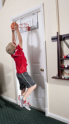 Spalding NBA Slam Jam Mini Basketball Hoop Designed to look just like the official backboards of the NBA, this scaled down replica fits right over your doorway to bring you basketball action and fun no matter where you are. SlamJamattheoffice Work Hard, Play Hard. The Slam Jam Mini Hoop fits right over your door, for basketball action wherever you go. SlamJamatthome Practice your basketball game indoors and at home - no court required Similar Look to the Official Game Backboards of the NBA The NBA Slam Jam is made at a 1/4" scale replica of actual NBA game backboard, keeping the proportions the same as the professional level backboards, and the design features a color NBA Logoman. With this set, you can get as close as possible to the real NBA experience, without having to leave your room. Foam Padding to Protect Door from Scuffing This basketball system comes with padded door hooks that won't cause damage to your doorway, and prevent scuffing that often occurs with other systems. Included in Set: The NBA Replica Game Ball The NBA Slam Jam set comes complete 4" rubber basketball, which arrives deflated. This ball is also designed with the look of actual NBA basketballs, featuring NBA Logoman graphics. NBA replica game ball Product Specifications 18" x 10.5" Polycarbonate Backboard 1/4" Scale Replica of Actual NBA Game Backboard Slam Jam Breakaway Rim 4" Rubber Basketball with NBA Logoman Graphics Foam Padding to Protect Door from Scuffing About Spalding From the beginning it was all about being first, being the best... being what others could only aspire to become. Established by Boston Red Stockings pitcher A.G. Spalding in 1876, Spalding has long been a leader of innovation and quality in the sporting goods category. From the development of the very first basketball to the latest in NeverFlat technology, Spalding's tradition of innovation continues.Feature