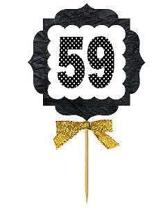 59th Birthday / Anniversary Gold Ribbon Hand Crafted Novelty Cupcake Decoration Toppers / Picks -12ct