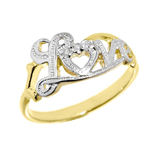 -. Binding : Jewelry -. Brand : Modern Contemporary Rings -. Department : womens -. Feature : fine jewelry band featuring the word "Love" spelled out in cursive letters / exquisitely handcrafted with 14 karat yellow gold in stunning polished finish and embellished with natural white diamond accents / comes with free special gift packaging / made in the USA yet offered at factory direct jewelry P.R.Ice / ships from the manufacturer directly to the customers -. Label : Claddagh Gold -. Manufacturer : Claddagh Gold -. Model : QKE3104 -. MPN : QKE3104 -. PartNumber : QKE3104 -. ProductGroup : Jewelry -. ProductTypeName : FASHIONRING -. Publisher : Claddagh Gold -. Studio : Claddagh Gold -. Title : Dainty 14k Yellow Gold High Polish Diamond Love Script Statement Ring