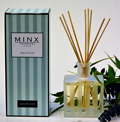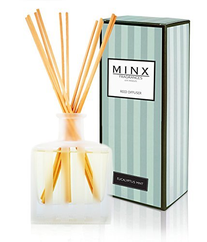 Prime Deal! Stress Relief EUCALYPTUS MINT Scented Reed oil Diffuser Gift Set by MINX Fragrances | Rosemary, Eucalyptus Leaves, Garden Mint & Citrus Notes | Great Gift Idea! USA Made