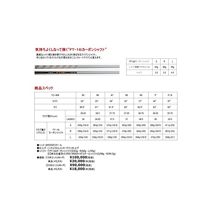 원본상품명: FOURTEEN(フォティン) TC404 アイアン(5本セット) FT16i(R) FT-16i メンズ TC404 右利き用 ロフト角(°):6I/25、7I/28、8I/32、9I/37、P