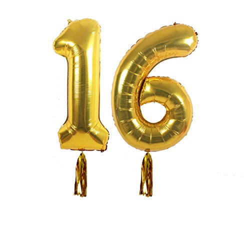 -. Title : 16th BIRTHDAY PARTY DECORATIONS KIT - Happy Birthday Banner Sign, Number 16 Mylar Balloon, Gold Tassels, Gold White Latex Ballon, Perfect 16 Year Old Party Supplies Free P.R.Intable Bday Checklist