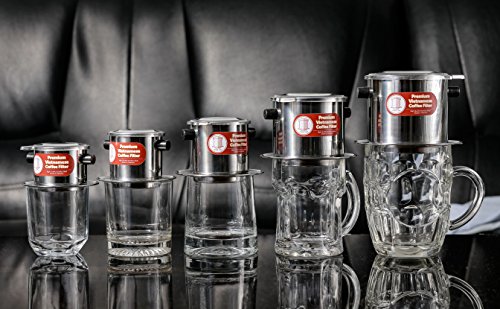 Product Description HIGH QUAILITY Vietnamese Coffee Filter Spend an extra couple of dollars and get a filter that has PREMIUM QUALITY THICK STAINLESS STEEL. It will keep the heat in and make a restaurant quality cup of Vietnamese Iced Coffee. Other filters may look similar but are not the same quality. Comes with PRINTED INSTRUCTIONS with pictures- very simple to use and clean (DISHWASHER SAFE). Comes in a variety of sizes - X-Small (4 ounce), Small (6 ounce), Medium (8 ounce), Large (11 ounce), and Extra Large (15 Ounce). The traditional size used in Vietnam is the 6 or 8 ounce. The large size is more common in Western Countries. These are single cup servings. The Extra Large can be used for 2 cups. Great for use at home, in the office, when travelling, and when camping. Take it EVERYWHERE! Environmentally friendly!- Paperless, RESUABLE unlike Keurig K Cups. If you like using a French press then you will love this! All you need is the filter, Vietnamese coffee or other ground coffee with a medium to coarse grind (a French grind works), a glass or mug, condensed milk (or fresh milk), and ice if you wish. Only takes a few minutes to drip through the small holes. SATISFACTION GUARANTEED OR YOUR MONEY BACK! We are so confident that you will love this Vietnamese Coffee Filter that we offer a 90 day money back guarantee, no questions asked! To Start making your own delicious Vietnamese coffee today simply click the "ADD TO CART" button above and to the right. 0 |