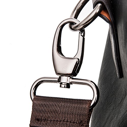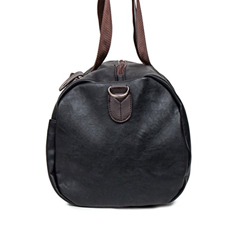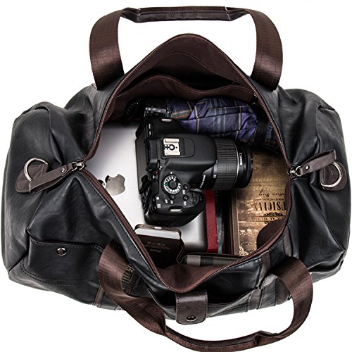-. Feature : Material: Superior synthetic leather, makes the overnight bag durable, fashionable and quality / Large size: 19.29" L x 8.26" H x 8.66" D / 1 x large zip main compartment; 1 x inner zip pocket; 2 x slit pockets; 3 x front slit pockets; 1 x adjustable and detachable nylon strap / The buckles, metal clasps, clips, zippers and straps are all of good quality and feel pretty solid, the top handles are rounded which makes it comfortable to carry / Stylish retro design suites to men,boys for business, weekend travel, daily travel or gym
