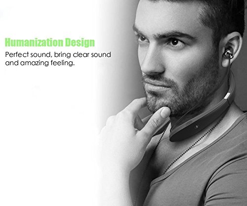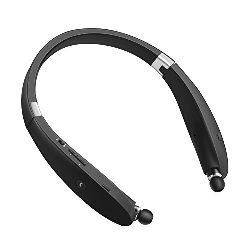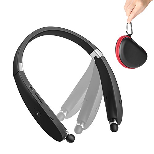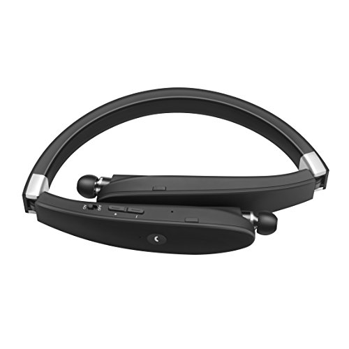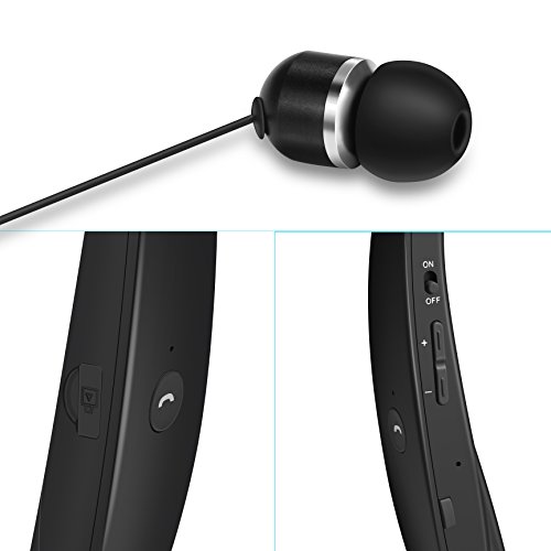 Bluetooth Headset, SDICL Wireless Stereo Headphones Neckband with Foldable and Retractable Earbuds (991 BLACK)