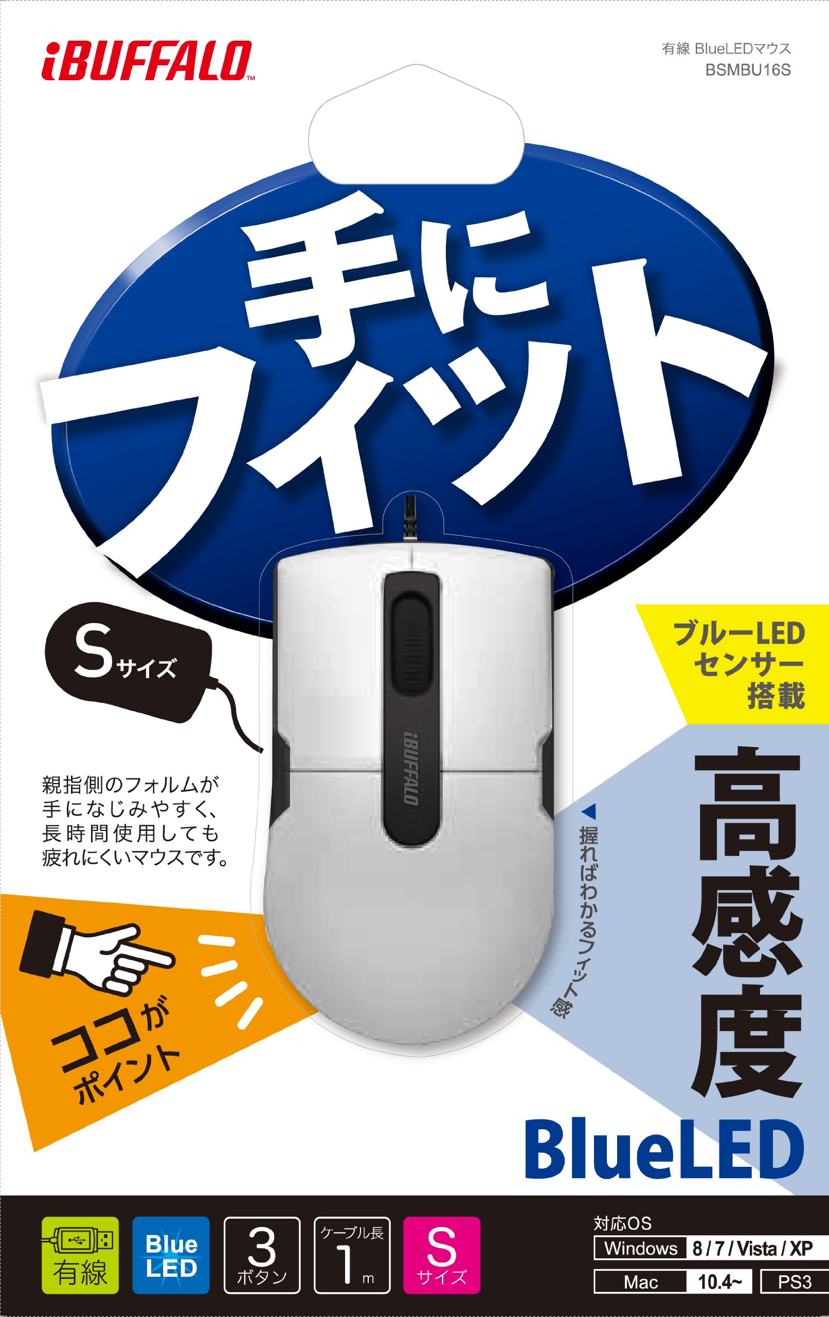Ultrahigh-sensitivity mouse "BlueFocus" series with BlueLED sensor with high reading performance, with improved usability and easier to hold.
