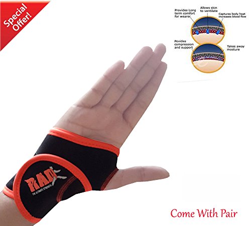Studio : Rad International Inc. Publisher : Rad International Inc. Binding : Misc. Product Description RAD Wrist Support gives the most pleasant fit and it is produced with the combination of neoprene.A single thumb hole has an important part in it assuring of an excellent grip.It can be wrapped around the wrist easily and it is held in place with a marvelous sensation and close finish Wrist Support improves your performance at the gym and it makes easier for you to lift the heaviest weights.It is made to give complete safety against sprains, bursitis,arthritis,tendinitis and mild wrist pain.RAD Wrist Support is designed to offer compression help heat retention to relieve pain and help healing. 0