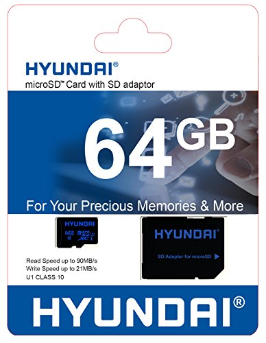 Hyundai 64GB Class 10 U1 Micro SDXC Card with Adapter up to 90MB/s (MHYMSDC64GC10)