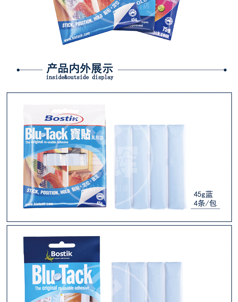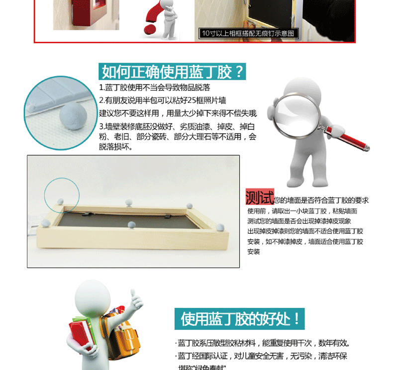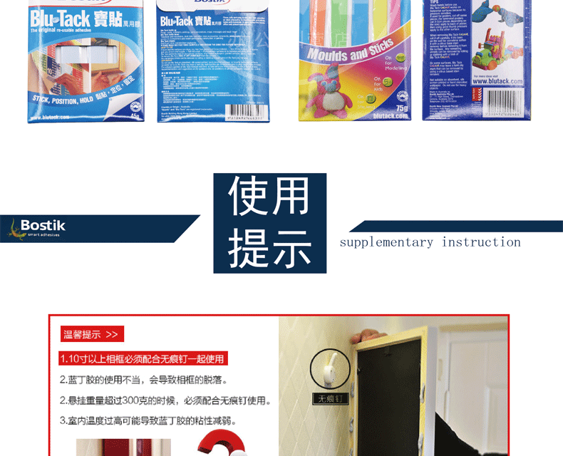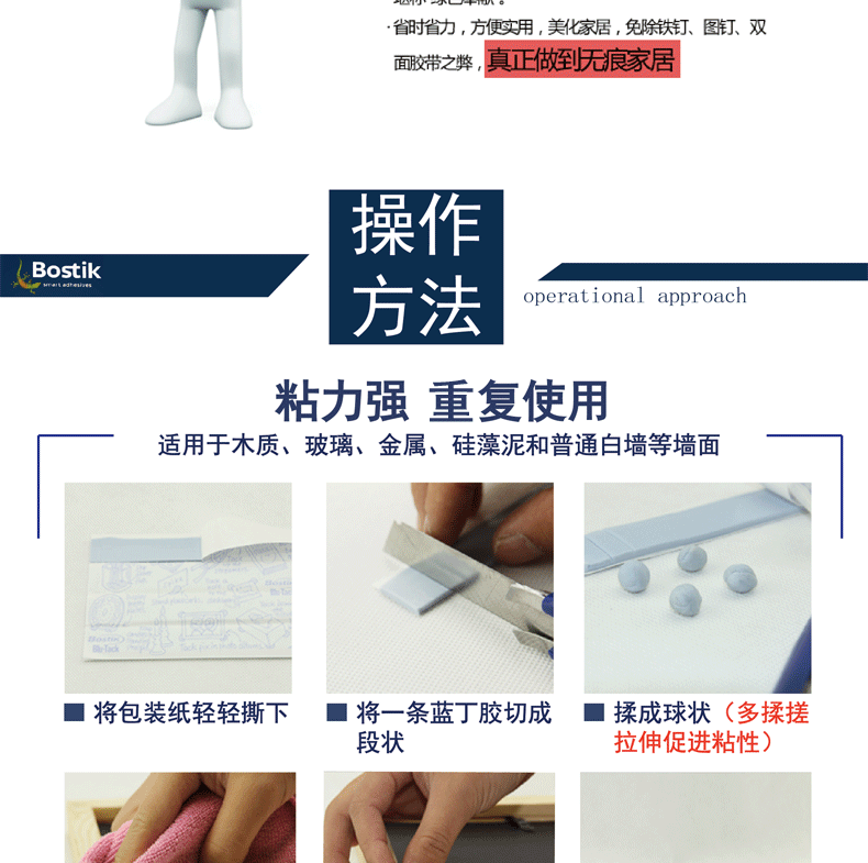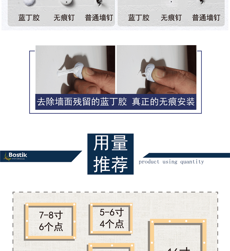 2. When using the first clean the wall, then according to the shape and size of the object to be sticky, take the appropriate amount of "Blue Butyl" rub into a small group, with the thumb pressure on the sticky place paste. Do not apply to wet, rough, and oily surfaces. The more smooth the surface, the higher the paste strength (can not paste any heavy objects or anything with glass is recommended 0.5KG the following is better), after positioning the force evenly pressed, the micelle flat into a dime coin, expanding contacts surface. After sticking, do not leave immediately to see if it is stable, if no instability, you can be done ~!