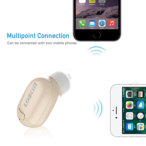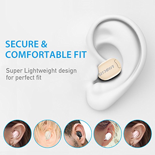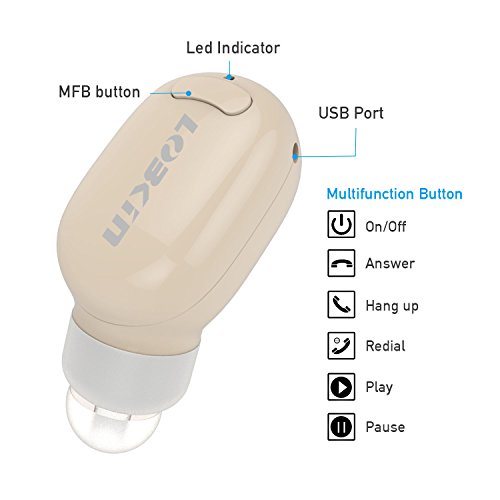 Lobkin Bluetooth Headsets,Mini Earbuds Smallest Wireless Headphones with Mic,In-Ear Earphones for Running - Beige