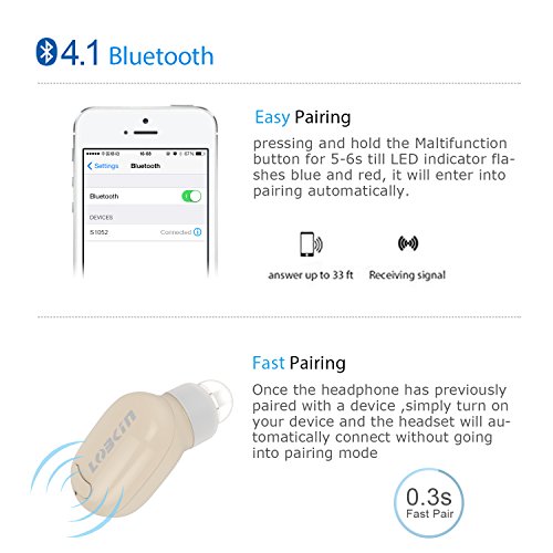 - Bluetooth 4.1 + EDR Technology - Bluetooth headset with advanced bluetooth 4.1+ EDR technology, instantly connected to your smarphone or tablet from up to 33 feet.Connected with TWO smartphones or Tablets at the same time, Versatile compatible with iPhone 6S/6 plus, iPhone7/plus, LG G5 G4 G3, Samsung Galaxy S7 S6, BlackBerry, HTC, iPad Pro, Bluetooth-enabled tablets