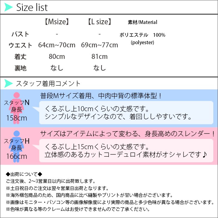 | 注意点 | ▼綿混合商品は洗濯時に多少縮む事がございます。 ▼パソコン、モニター等の環境により、実際の商品素材カラーが多少異なる場合が御座います。予めご了承ください。 ▼お手数ですが必ずお買い物ガイドを一読頂いてからご利用いただきますようお願い申し上げます。 |