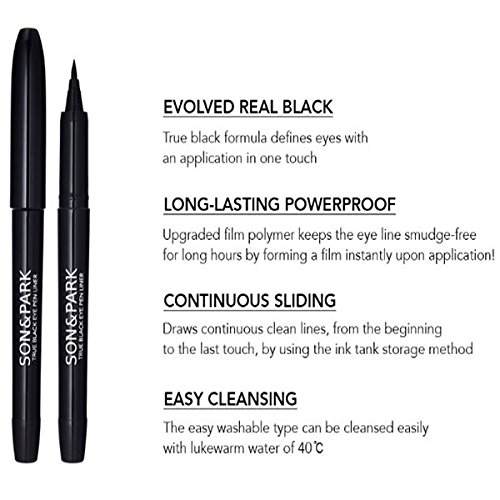 -. Binding : Health and Beauty -. Brand : SON&PARK -. EAN : 8801942040015 -. Feature : Upgraded film polymer keeps the eye line smudge-free for long hours by forming a film instantly upon application / Draws continuous clean lines, from the beginning to the last touch, by using the ink tank storage method / The easy washable type can be cleansed easily with lukewarm water of 40 degree. / Fill in the waterline in detail like a tattoo by slightly lifting the eyelid / Draw eye lines longer than the eye to provide a lengthening effect. -. IsAdultProduct : 0 -. Label : DIC Inc. -IMPORT FOB -. Manufacturer : DIC Inc. -IMPORT FOB -. NumberOfItems : 1 -. PackageQuantity : 1 -. ProductGroup : Beauty -. ProductTypeName : BEAUTY -. Publisher : DIC Inc. -IMPORT FOB -. ReleaseDate : 2017-07-27 -. Studio : DIC Inc. -IMPORT FOB -. Title : Son&Park True Black Eye Pen Liner, 5 Count