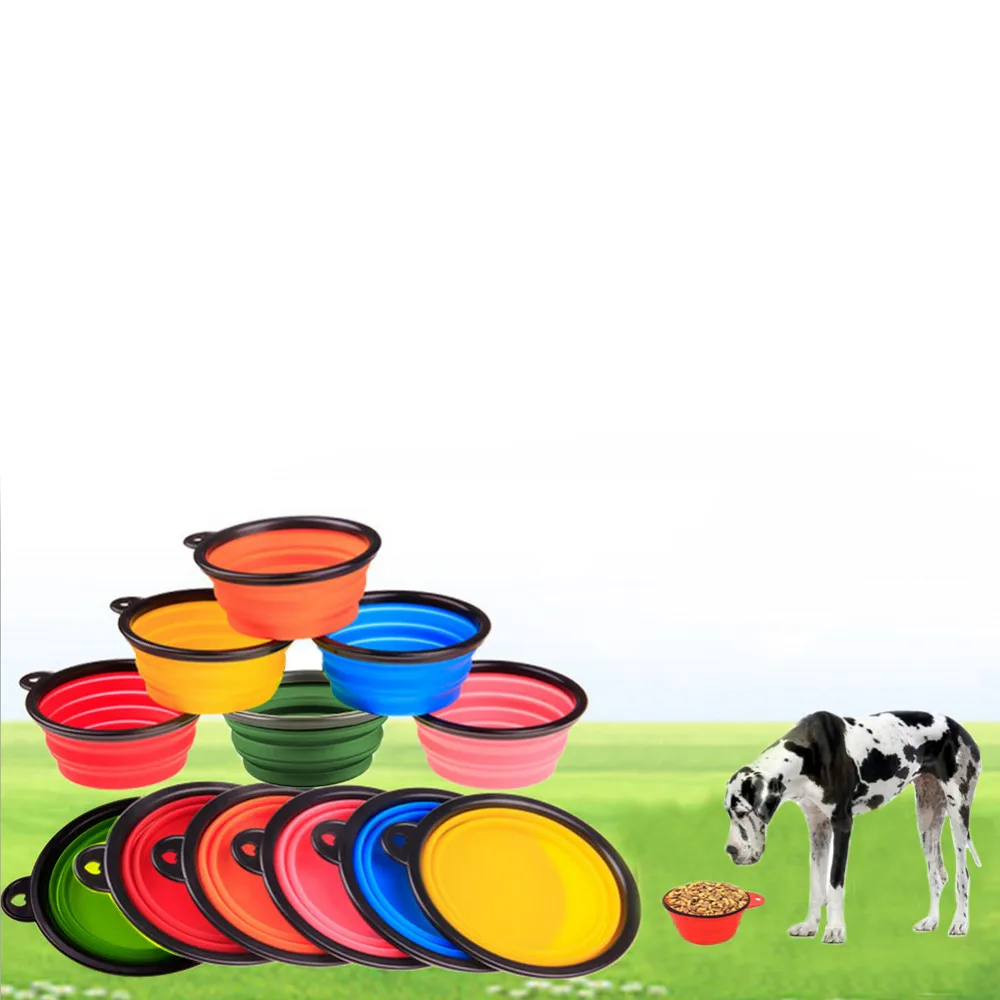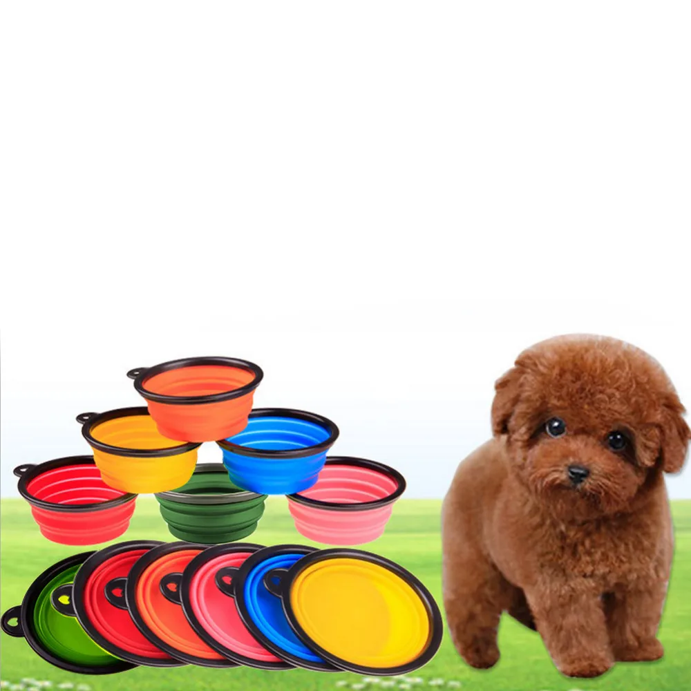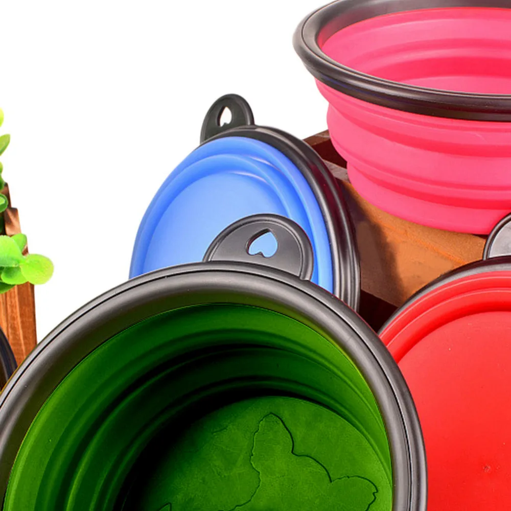 Dog Puppy Collapsible foldable silicone dow bowl candy color outdoor travel portable doogie food container feeder dish