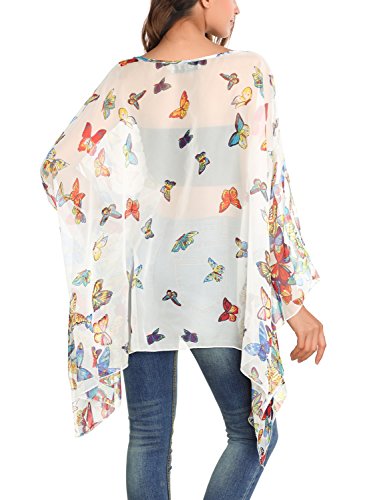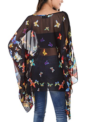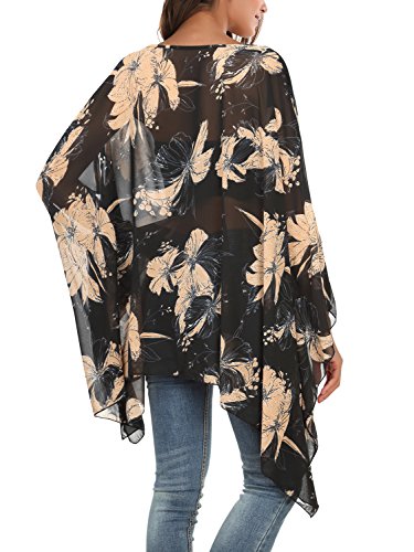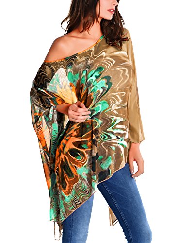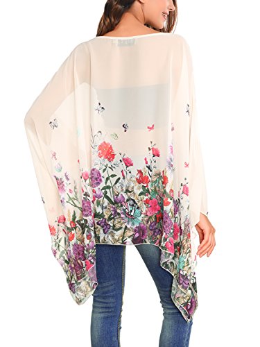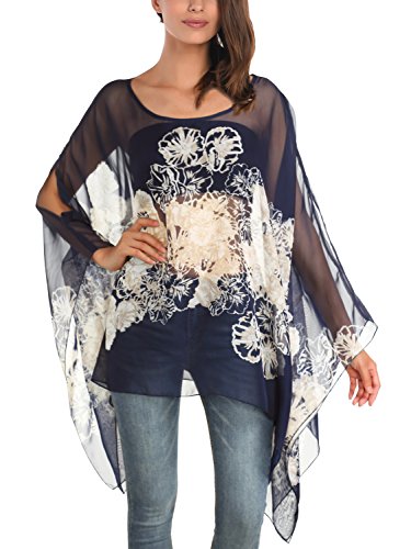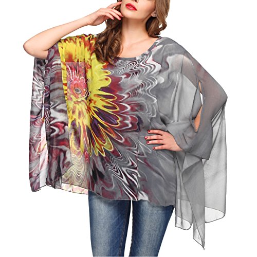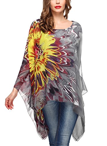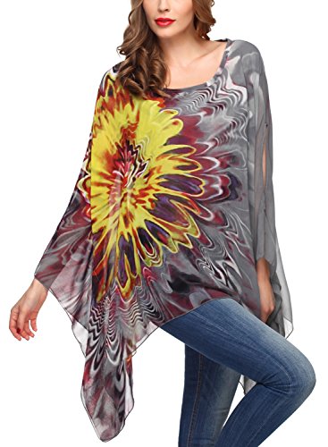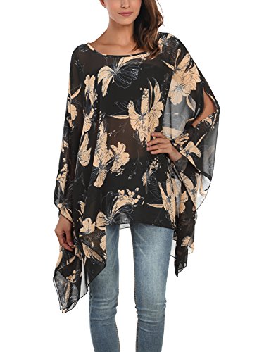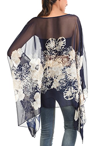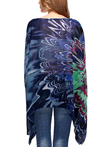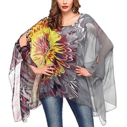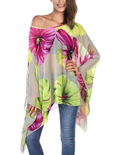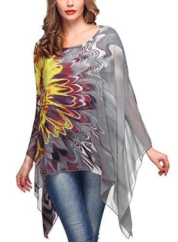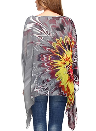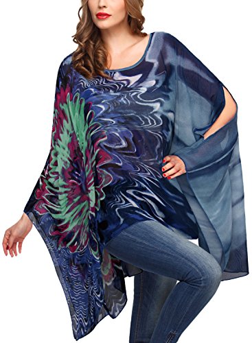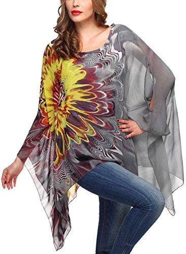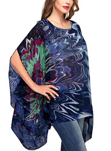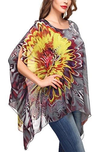 DJT Womens Floral Printed Chiffon Caftan Poncho Tunic Top