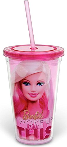 Barbie - 16oz Plastic Cold Cup w/Lid & Straw