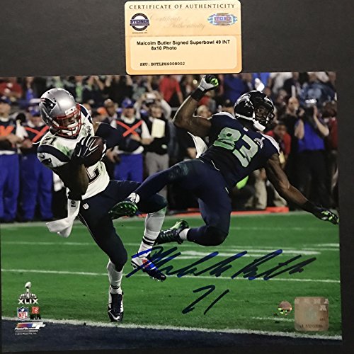 Autographed/Signed Malcolm Butler New England Patriots Super Bowl 49 GW INT 8x10 Photo Steiner Sports COA