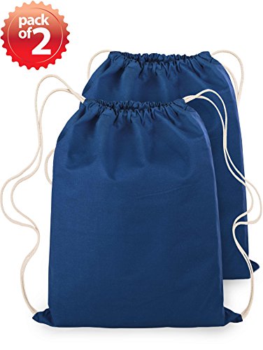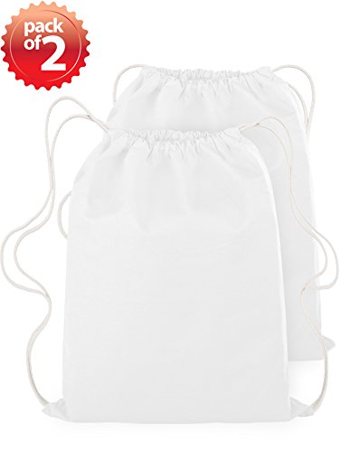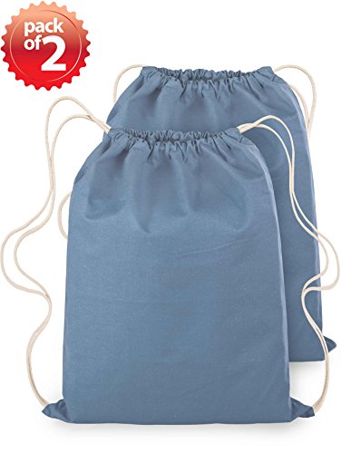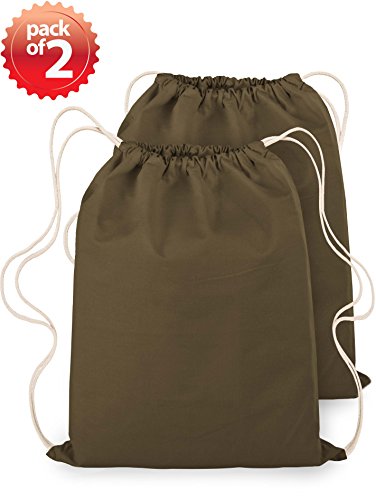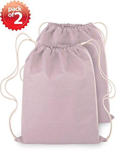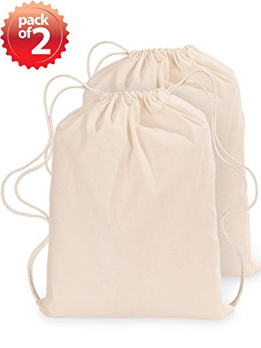 Drawstring Canvas Backpack Sports Bag 14"x18" 100% Cotton Pack of 2