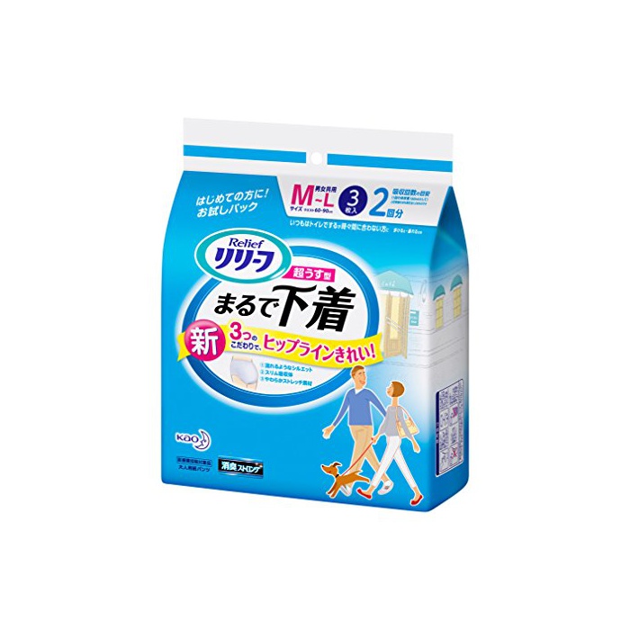 원본상품명: 【お試しパック】リリ?フ パンツタイプ 超うす型まるで下着 M~L【ADL?分:一人で?ける方】 3枚入