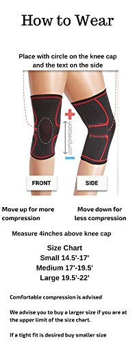 - Compression Knee Sleeve is Ergonomically Designed for comfort to fit adults, teens, children, and seniors. Depending on the desired compression pull up for maximum compression, pull down if less compression is desired. See size chart in images.